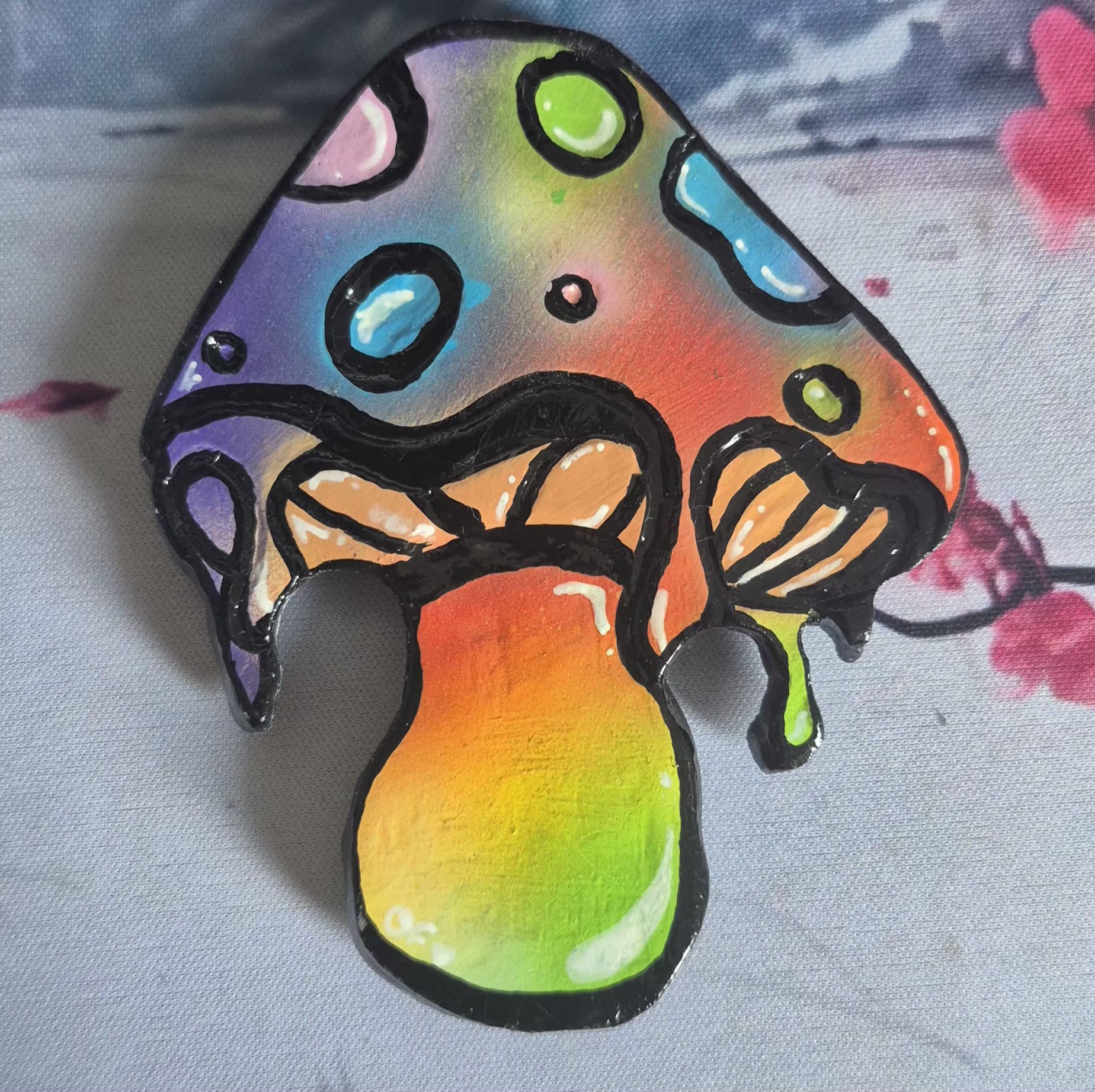 Modelé en pâte autodurcissante puis peint à la main, ce magnet aux teintes vibrantes et aux détails fondants semble presque en mouvement, comme s’il respirait doucement.